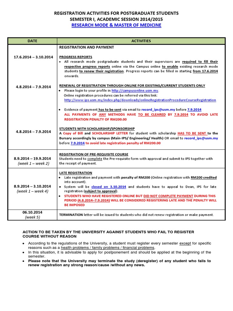 Registration Activities For Postgraduate Students Semester I Academic Session 2014 2015 Postgraduate Education Academia Free 30 Day Trial Scribd