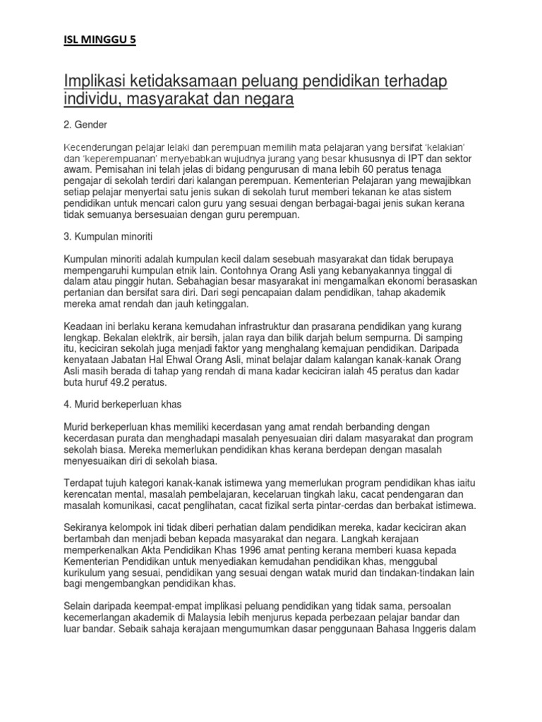Implikasi Ketidaksamaan Peluang Pendidikan Terhadap Individu