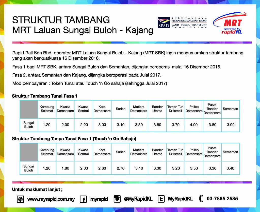 Kadar Tambang Mrt Sungai Buloh Kajang 2017 Lokmanamirul Com