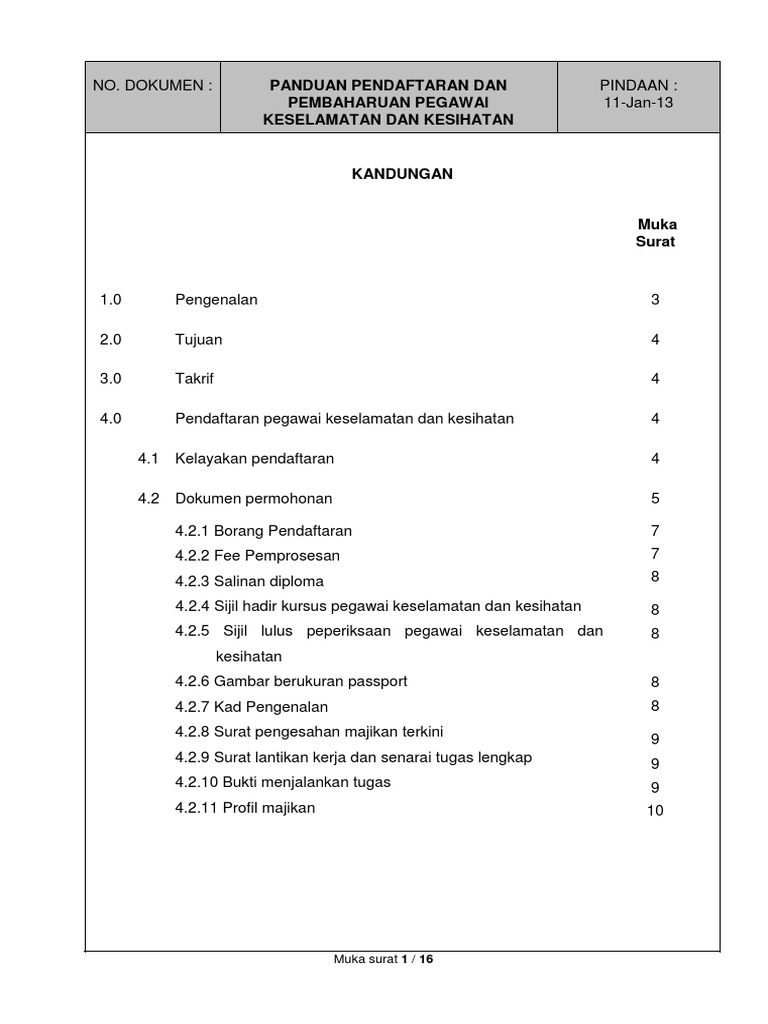 Sistem Keselamatan Dan Kesihatan Pekerjaan Mykkp Dosh Gov My Manual 105j Pemeriksaan Audit Pegawai Pelaksanaan Pdf Document