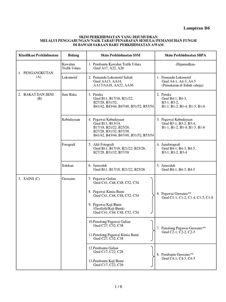 B6 Skim Perkhidmatan Yang Dijumudkan