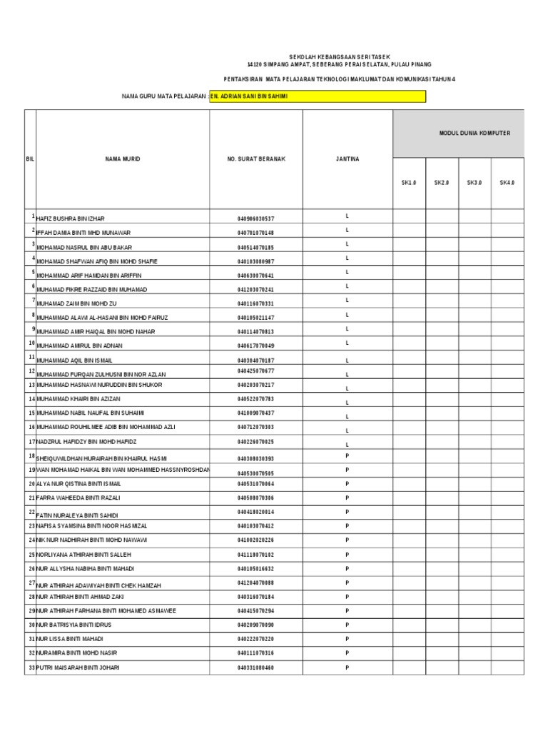 Template Offline Tmk Teknologi Maklumat Komunikasi Pelaporan Tahun 4 Xls