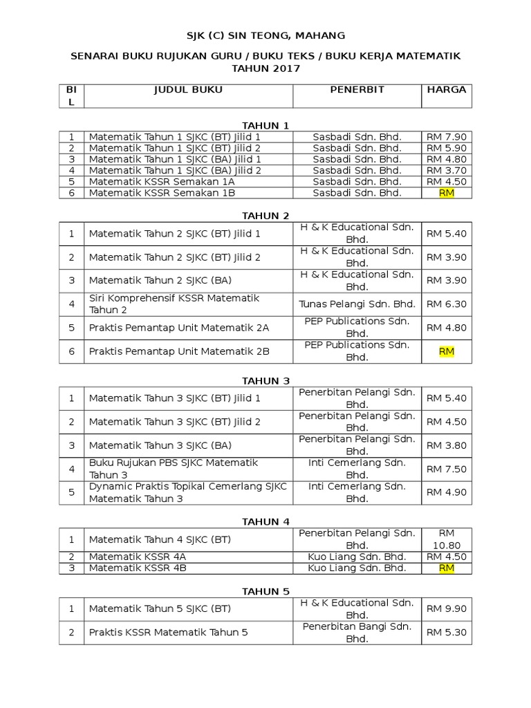 Senarai Buku 2017 Darjah 1 Darjah 6 Sekolah Kebangsaan Bukit Tinggi Facebook