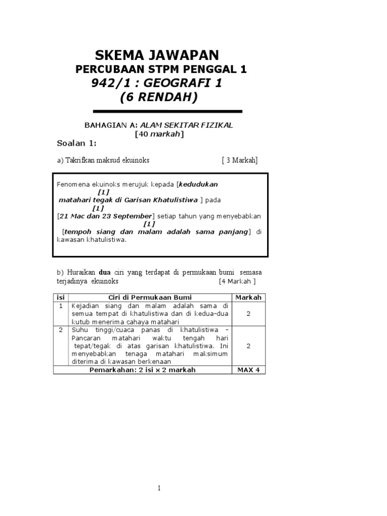 Geografi Stpm Skema Peperiksaan Percubaan Penggal 1 2016